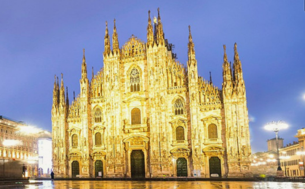 기원후 1386년 착공된 밀라노 대성당은 이탈리아 후기 고딕의 대표작입니다. 수백 개의 첨탑과 대리석 조각(기원후 15세기 완공)은 르네상스 요소와 융합되어 장식적 정교함을 극대화했습니다. - 영국 수직 양식 (기원후 1350년경)